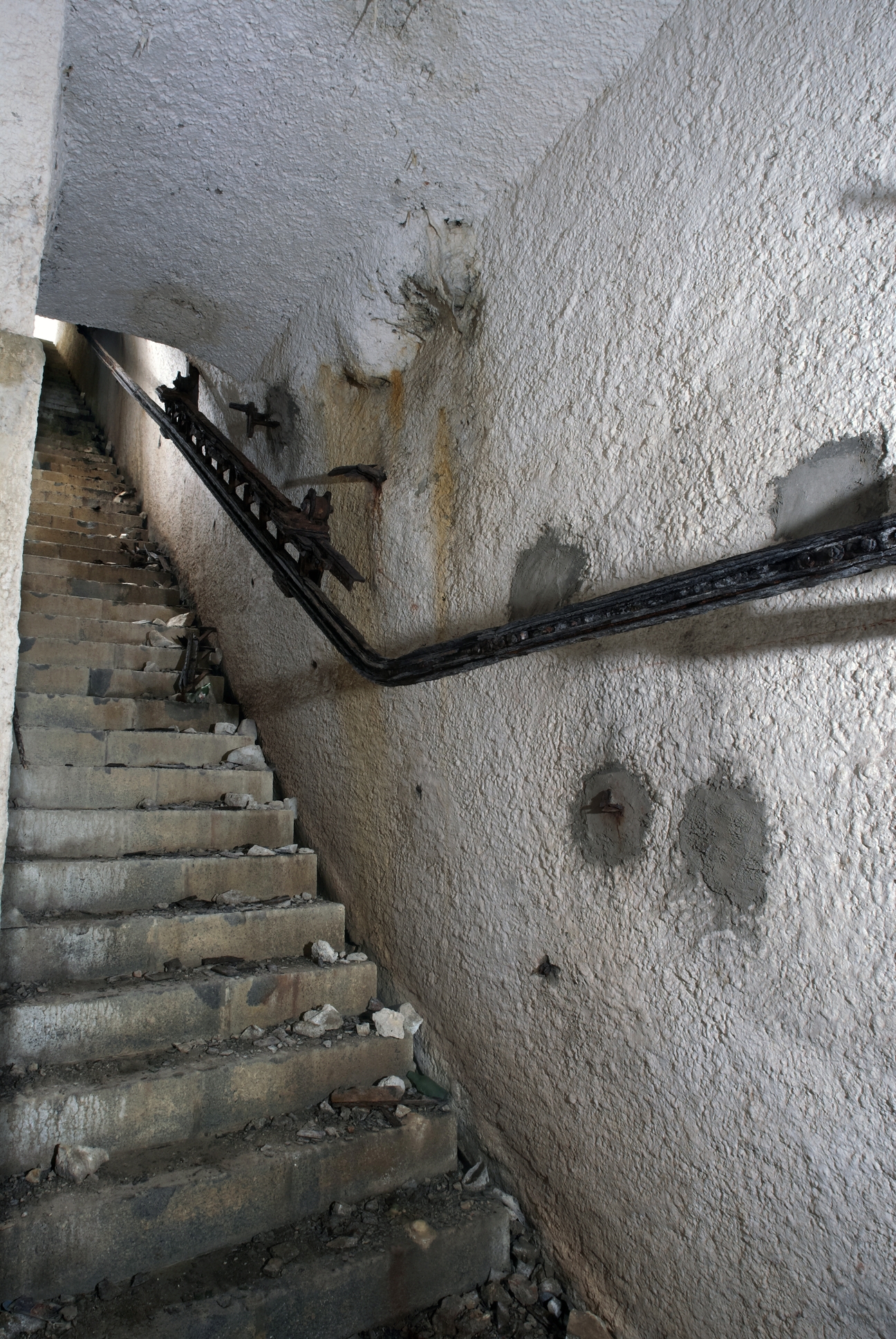 Camaret, pointe du Toulinguet : magasin à poudre sous roc (construction vers 1892), escalier d'accès et monorail élévateurImmatriculation