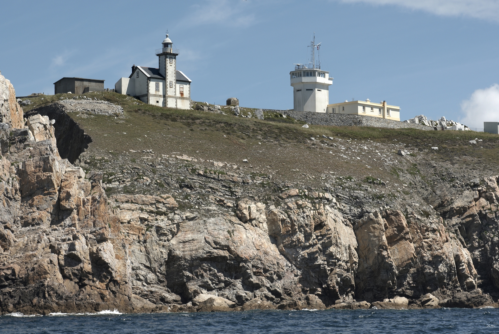 Camaret, pointe du Toulinguet : vue générale depuis la mer, phare, sémaphore et fortificationsImmatriculation