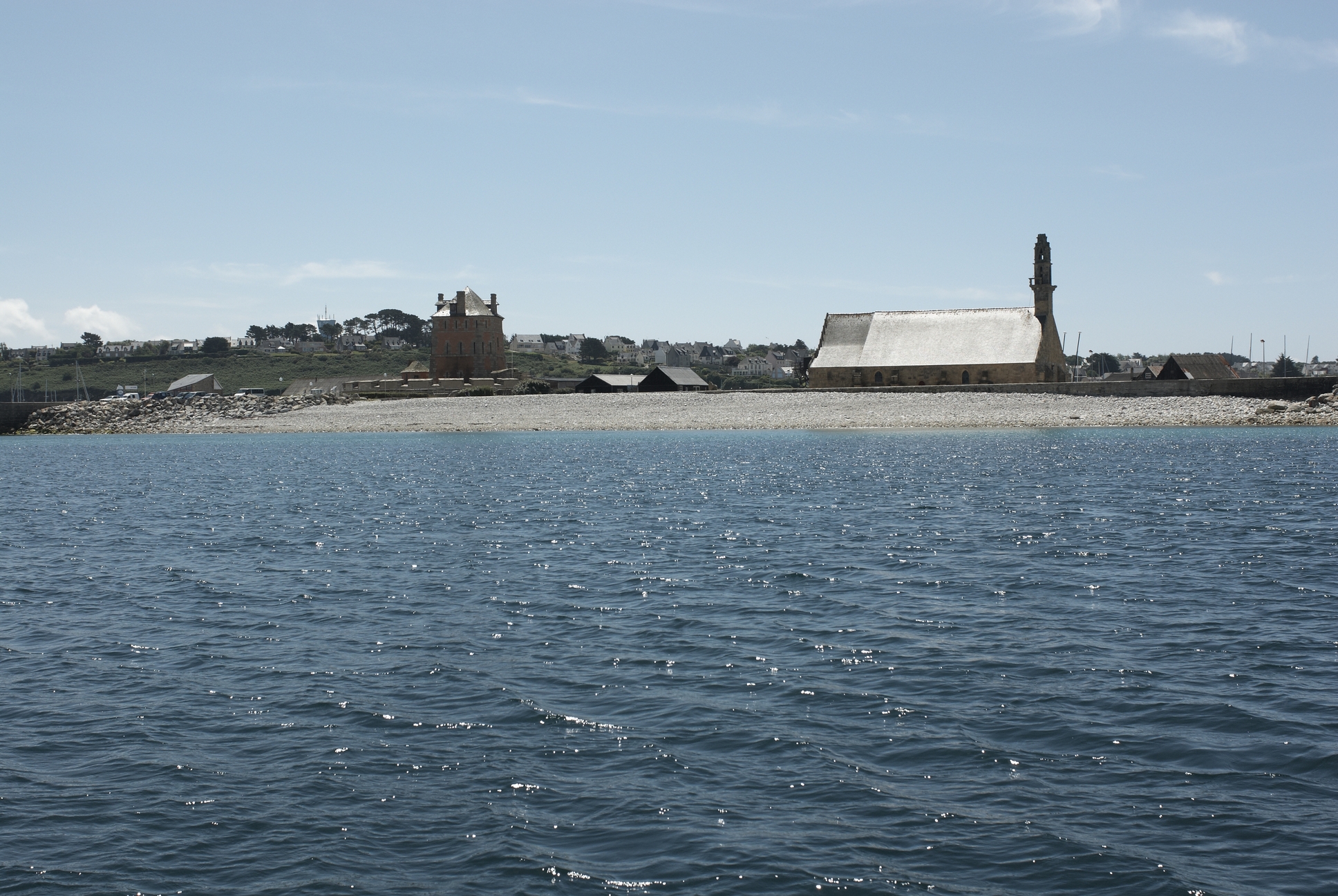 Camaret-sur-Mer : vue du sillon, de la chapelle de Rocamadour et de la tour Vauban depuis la merImmatriculation