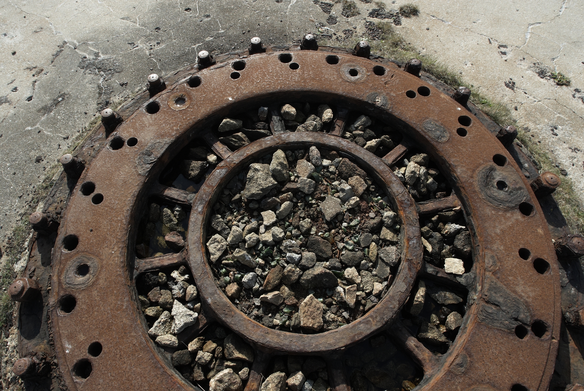 Vue de la batterie d'artillerie de côte d'exercice de Toulbroc'h : emplacement d'un affût (état en 2009)Immatriculation