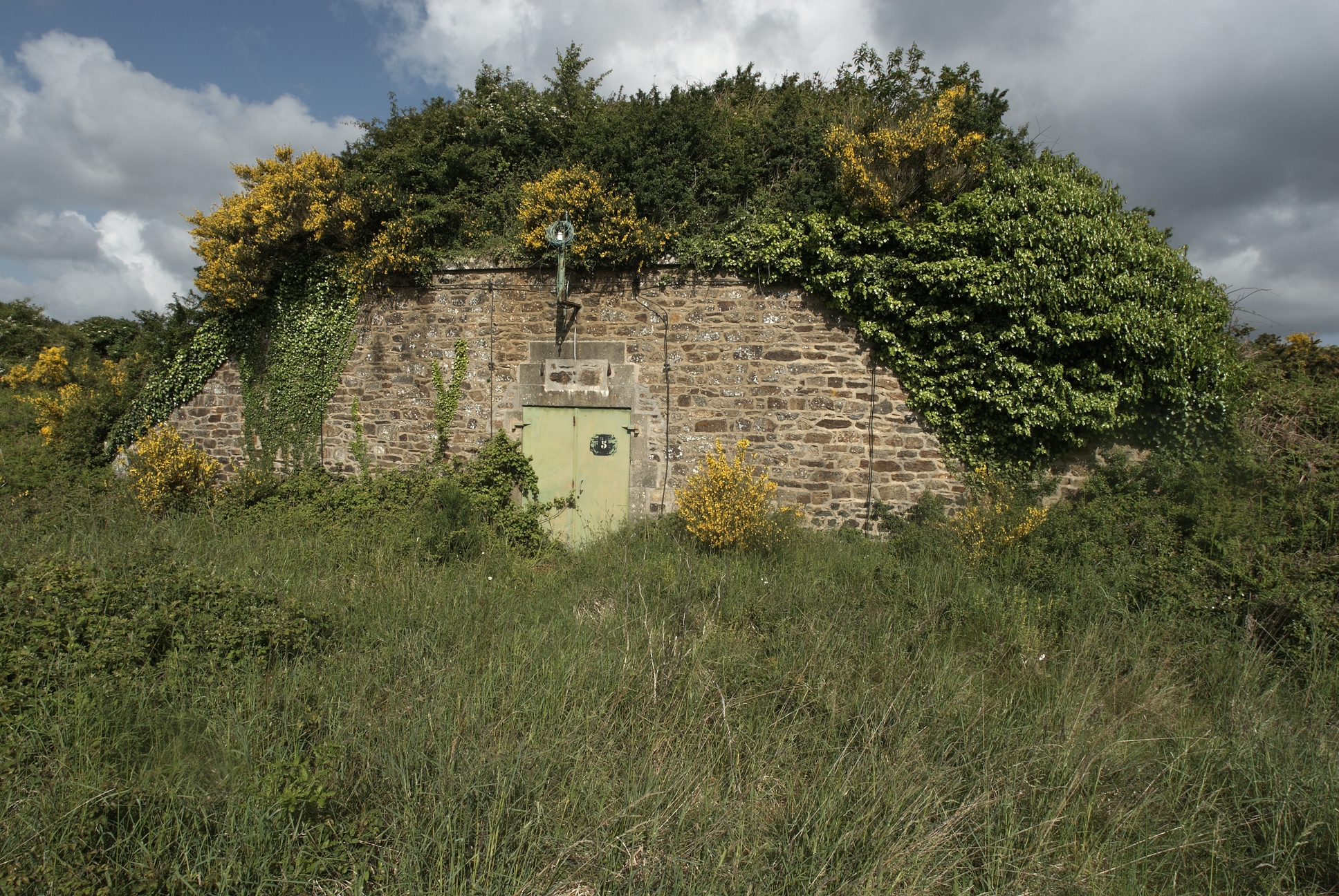 Vue de l'une des traverses-abris des batteries extérieures (état en 2009). La végétation a repris possession des lieuxImmatriculation