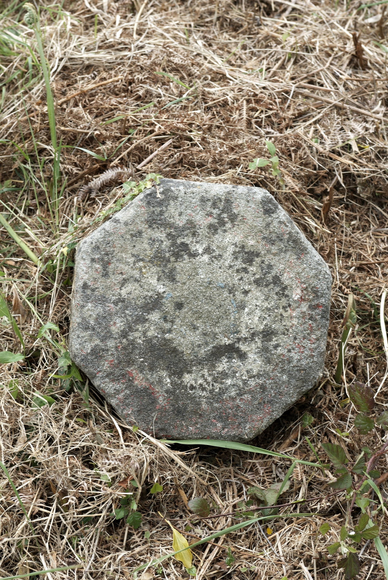 Vue de l'une des bornes de forme octogonale délimitant l'emprise du terrain militaire (état en 2009)Immatriculation