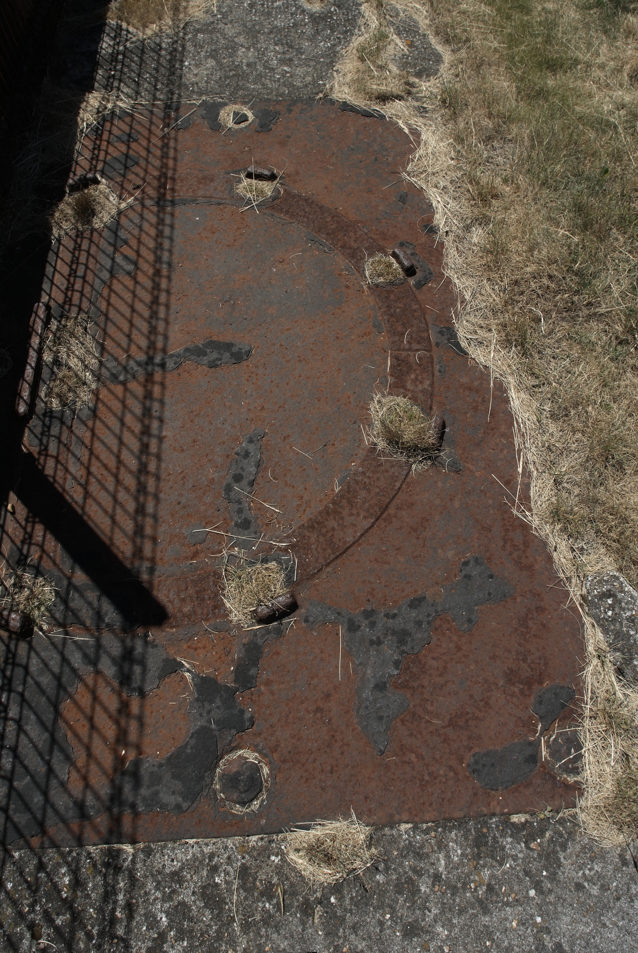 Plouzané : vue du fort du Mengant, détail de la batterie basse, sous-sellette d'affût pour canon de 47 mm à tir rapideImmatriculation