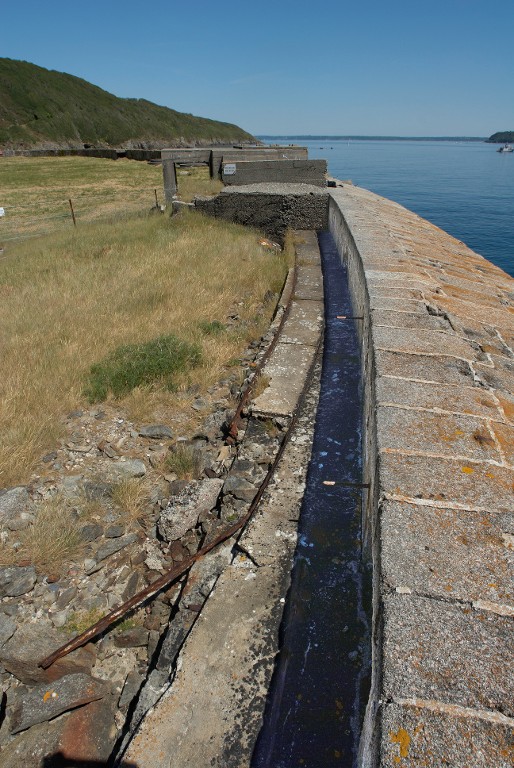 Vue de la batterie basse du Mengant : parapet, voie ferrée du poste de projecteur et bunker-poste d'observation (état en 2009)Immatriculation