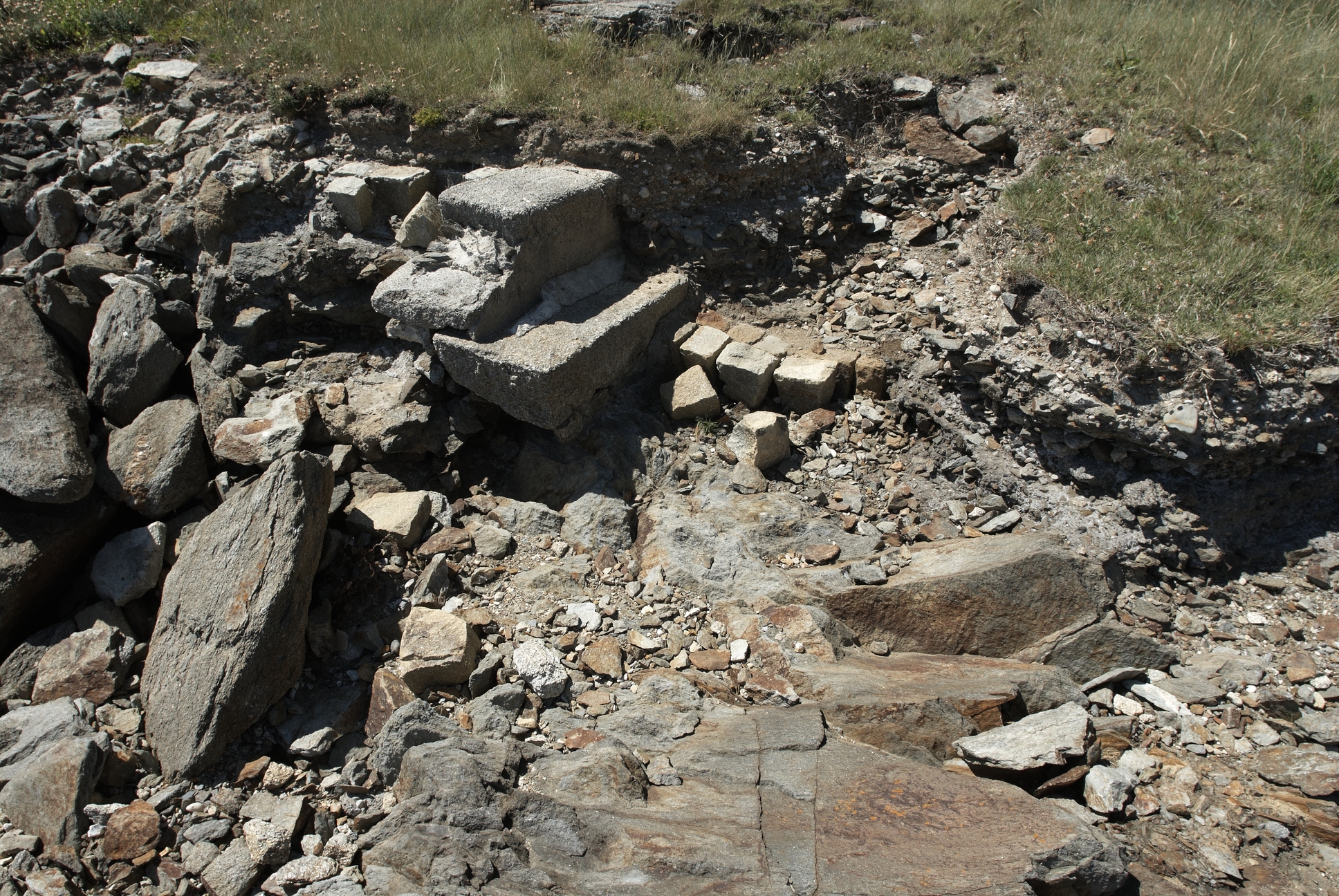 Plouzané : vue du fort du Mengant, détail de la batterie basse, extrémité ouest ruinée, niveau de sol primitifImmatriculation