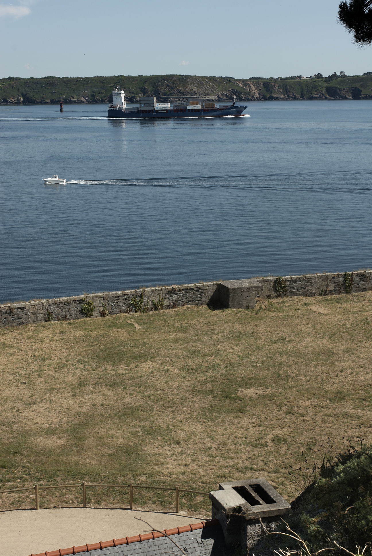 Plouzané : navire de charge depuis le fort du Mengant. Au premier plan : la batterie basseImmatriculation
