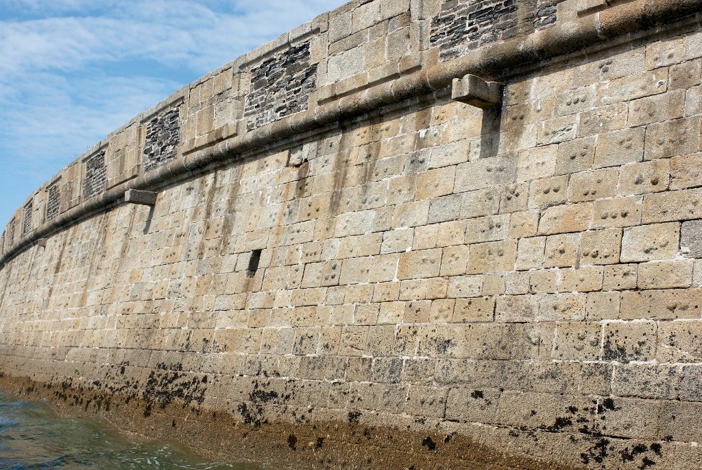 Vue de la batterie basse du Mengant : détail du parapet et du parement en pierre de taille de granite (état en 2009)Immatriculation