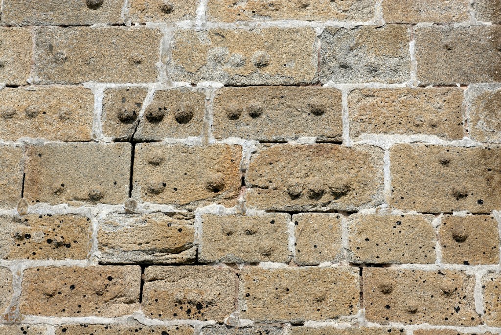 Vue de la batterie basse du Mengant : détail du parement en pierre de taille de granite (état en 2009)Immatriculation