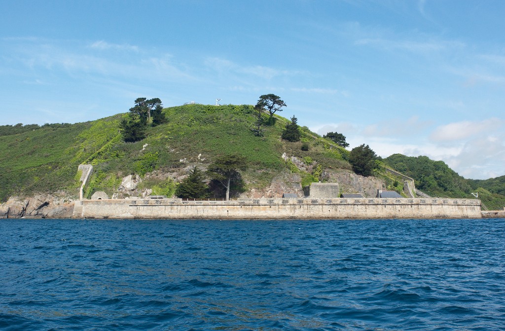 Vue générale depuis la mer (état en 2009). Deux branches tombantes ferment les flancs à lest et à louestImmatriculation