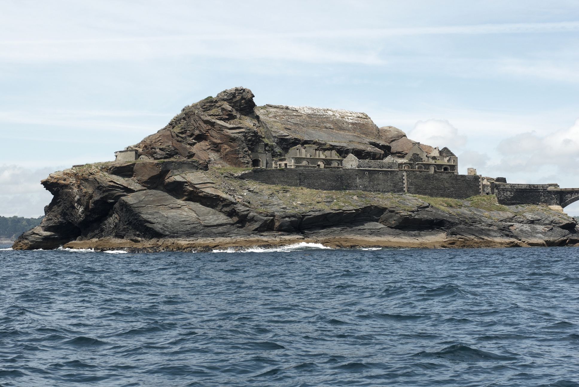 Roscanvel : vue de l'ensemble fortifié de l'îlot des Capucins depuis la mer, face sudImmatriculation