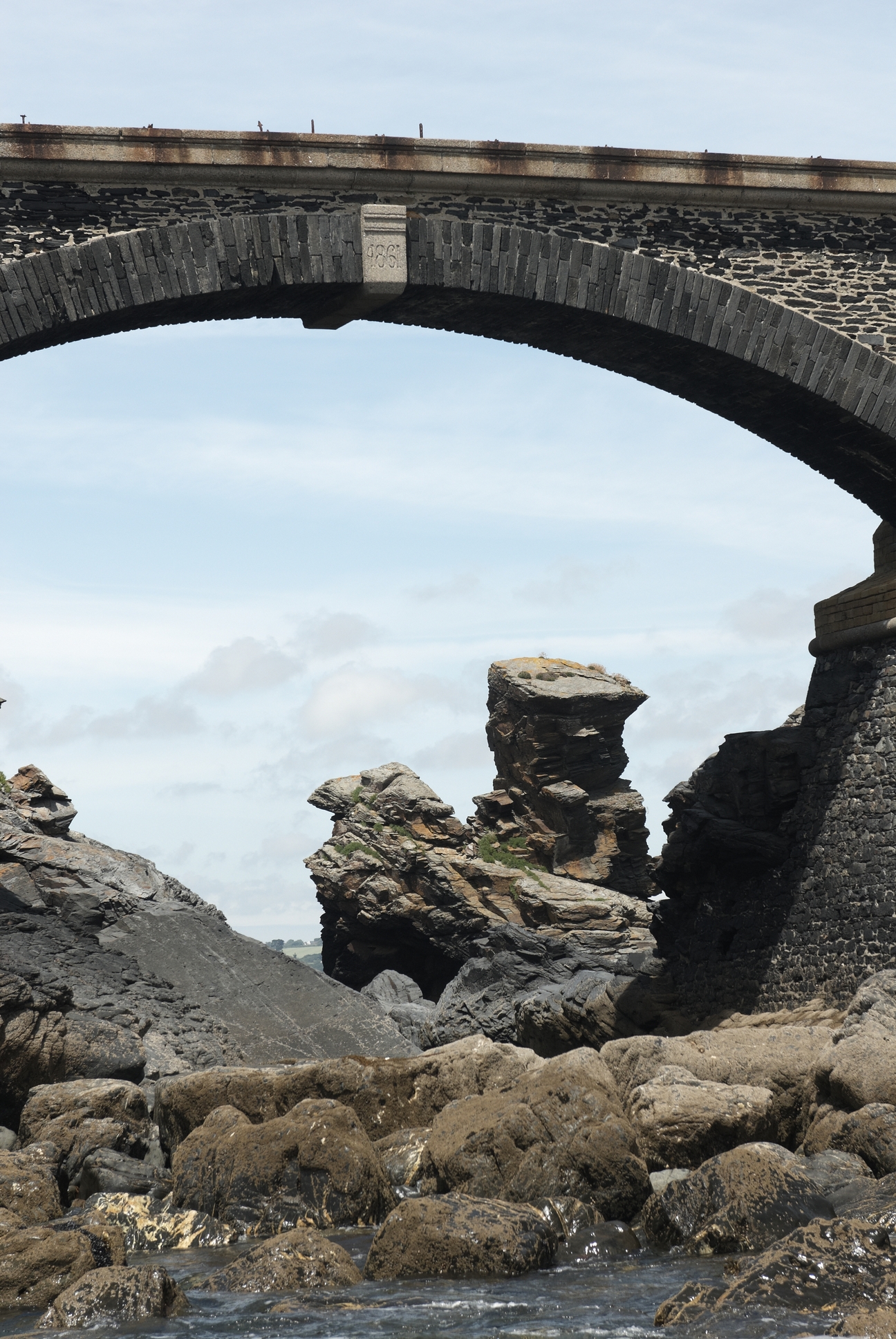 Roscanvel : vue de l'ensemble fortifié de l'îlot des Capucins depuis la mer, face sud, le pontImmatriculation