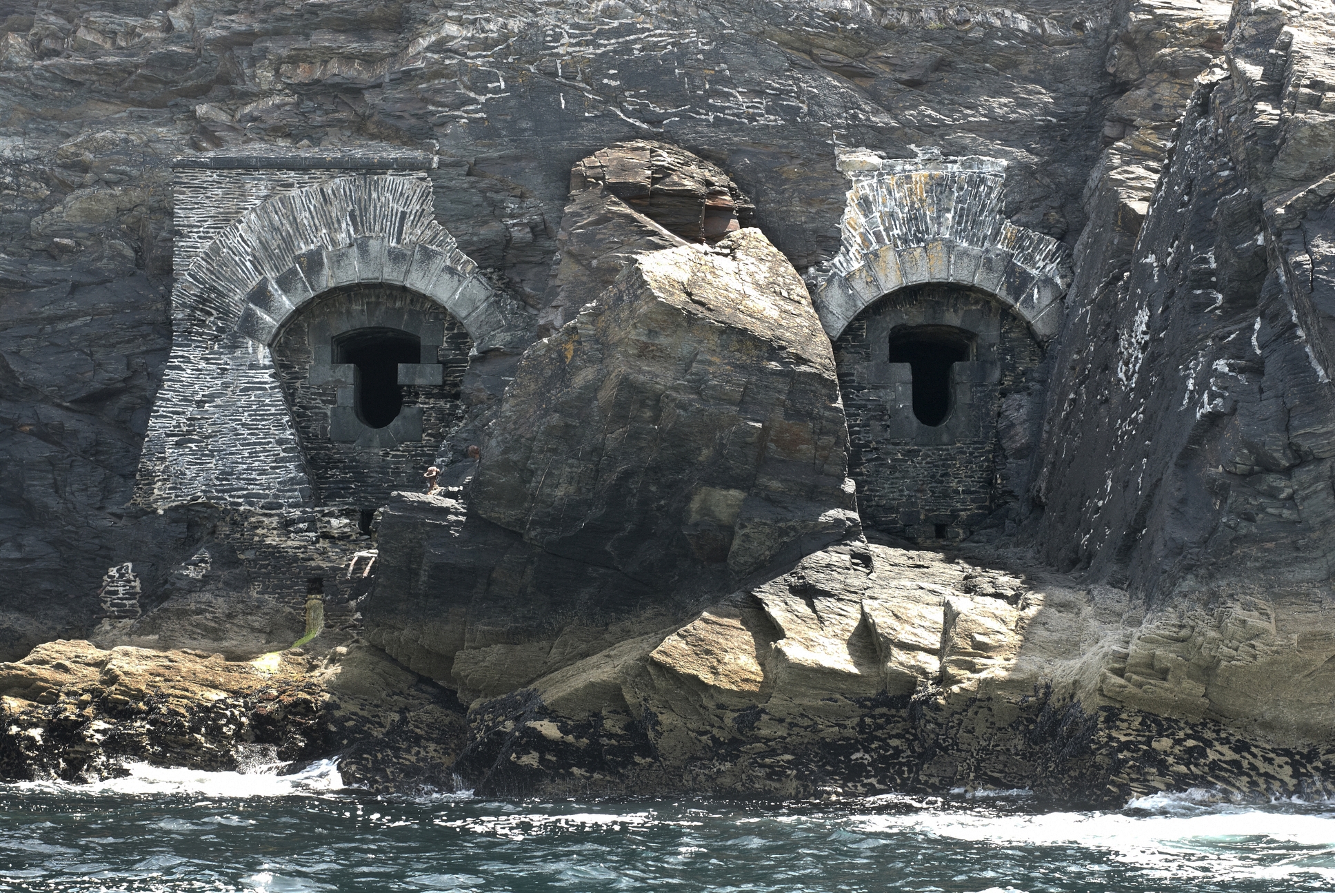 Vue des deux embrasures depuis la mer (état en 2009)Immatriculation