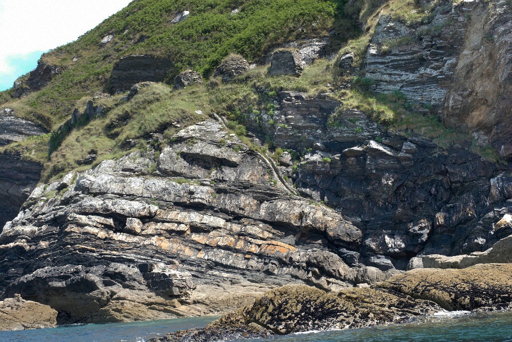 Vue depuis la mer : extrémité ouest (état en 2009). On distingue le parapet percé d'embrasuresImmatriculation