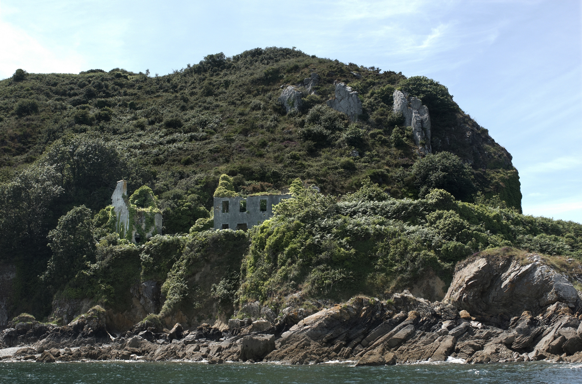 Roscanvel : vue de la pointe des Espagnols, batterie basse et casernements envahi par la végétation depuis la merImmatriculation