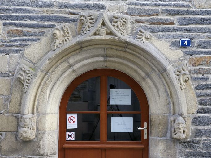 Maison, élévation antérieure, 1er niveau : décor sculpté de la porte (état en 2012)Immatriculation
