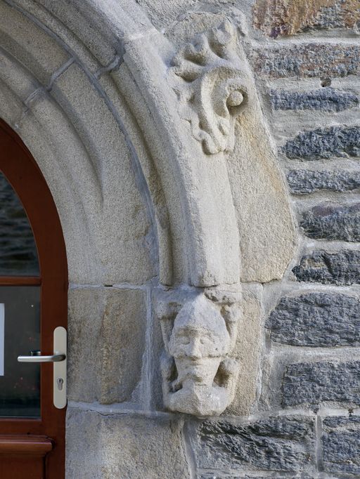 Maison, élévation antérieure, porte : culot de droite (état en 2012)Immatriculation