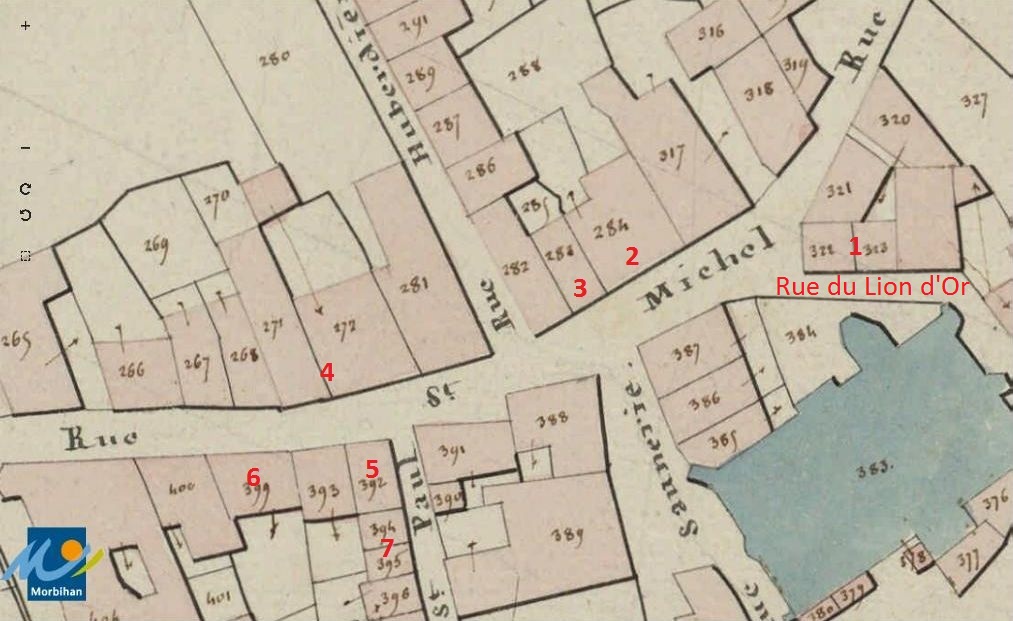 La maison (1) sur le cadastre de 1829 (A. D. du Morbihan, 3 P 171/5)Immatriculation