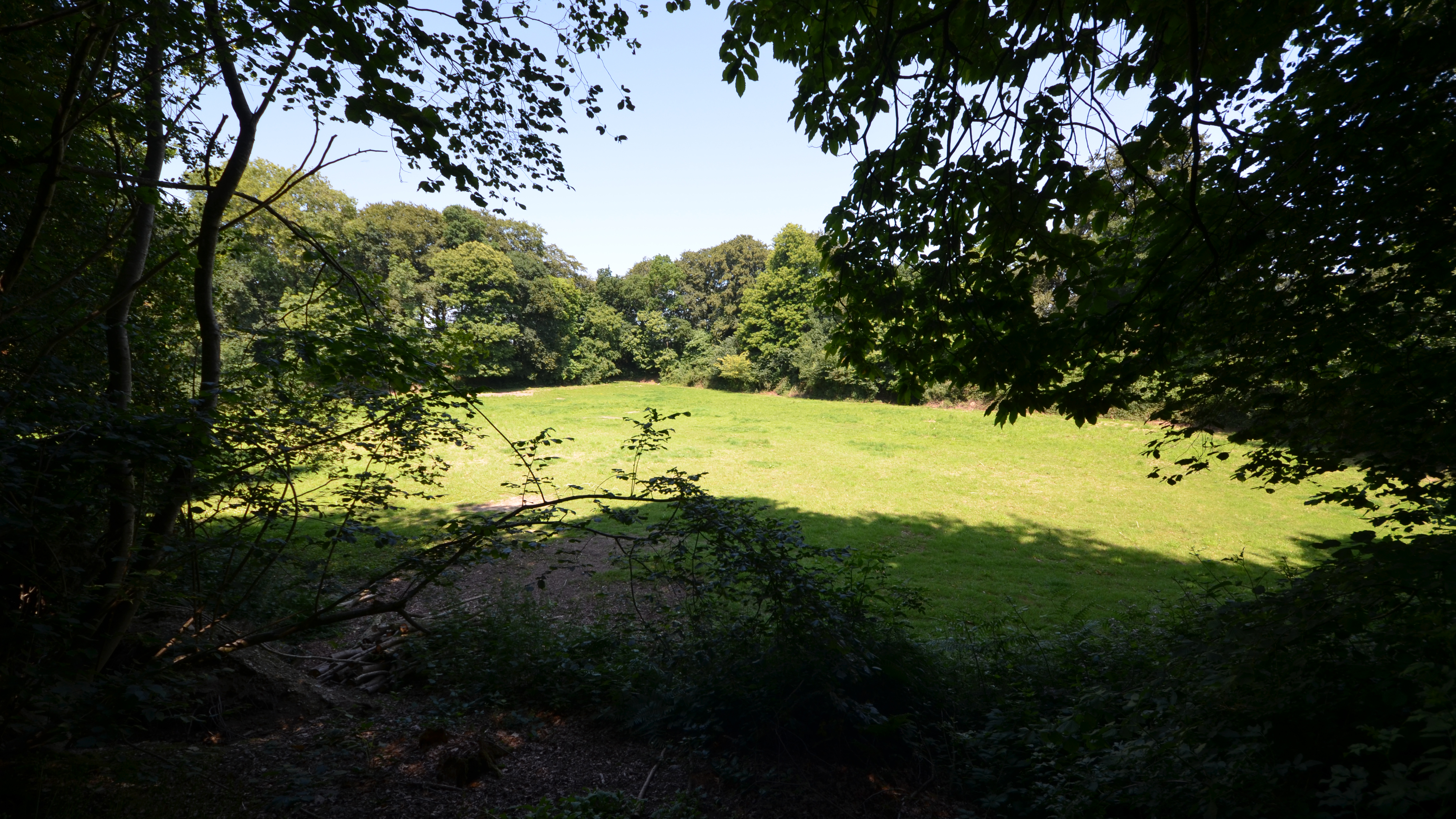 Vue de l'intérieur du camp : sa surface est d'environ 4 500 m2 (état en 2013). Cette parcelle sert de pâtureImmatriculation