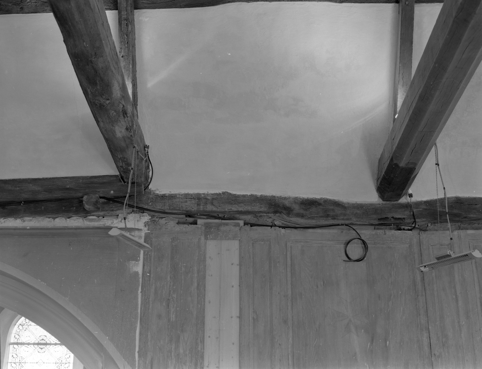 Vue intérieure, sablières et lambris de la nef, état vers 1980Immatriculation