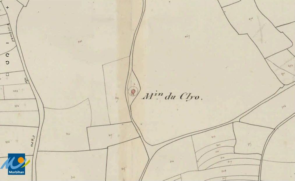 Le moulin à vent du Cléyo sur le cadastre de 1829 (A. D. du Morbihan, 3 P 75/2)Immatriculation