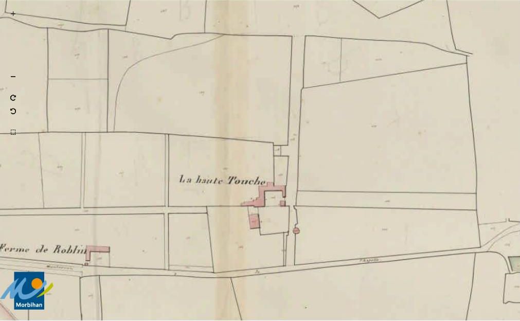 Le château de la Haute-Touche sur le cadastre de 1829 (A. D. du Morbihan, série 3 P 185/6)Immatriculation