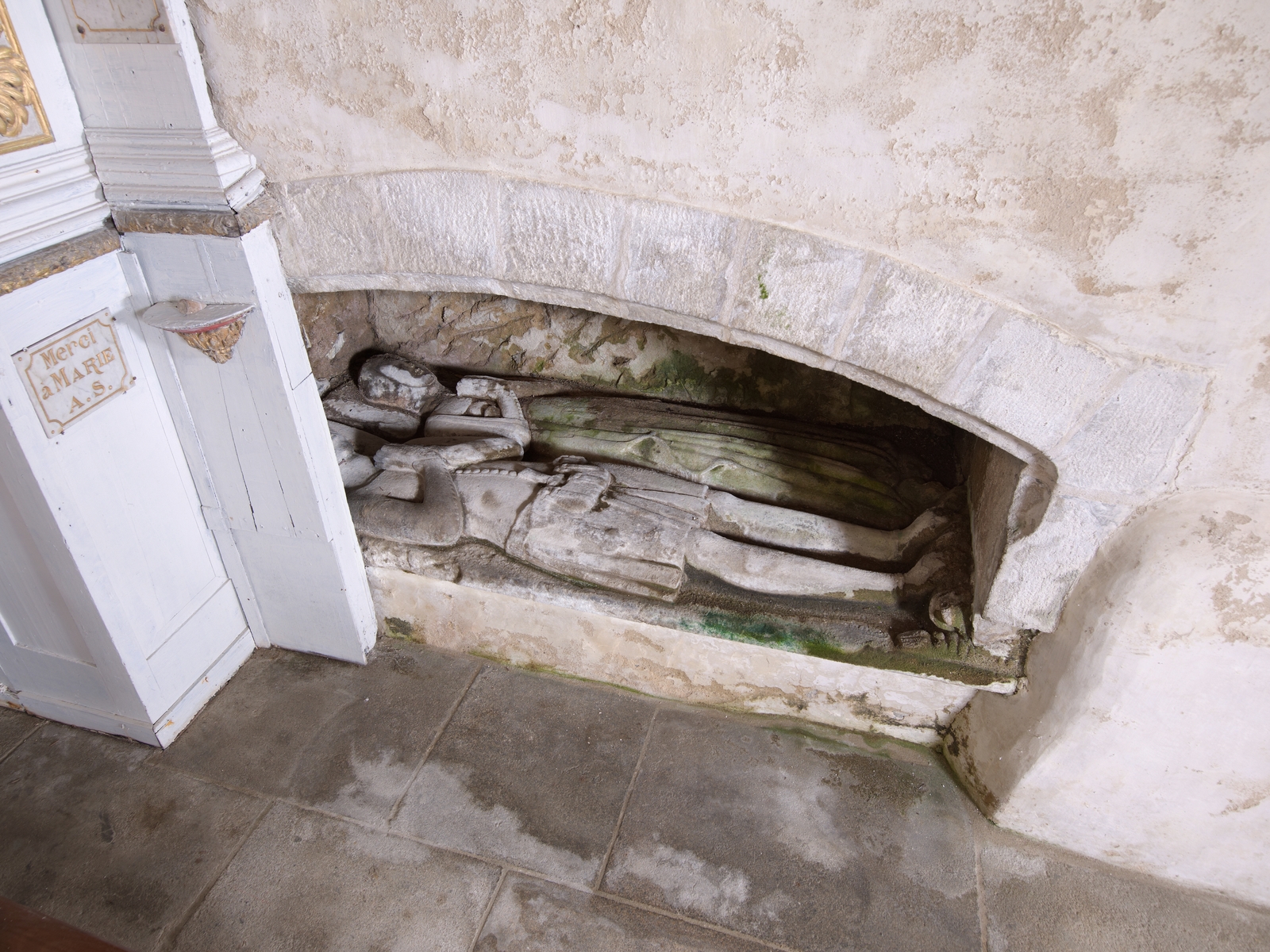Chapelle nord. Enfeu et gisants des seigneurs de Roc'hélec'h à Langoat, fin du 14e siècle. Vue généraleImmatriculation