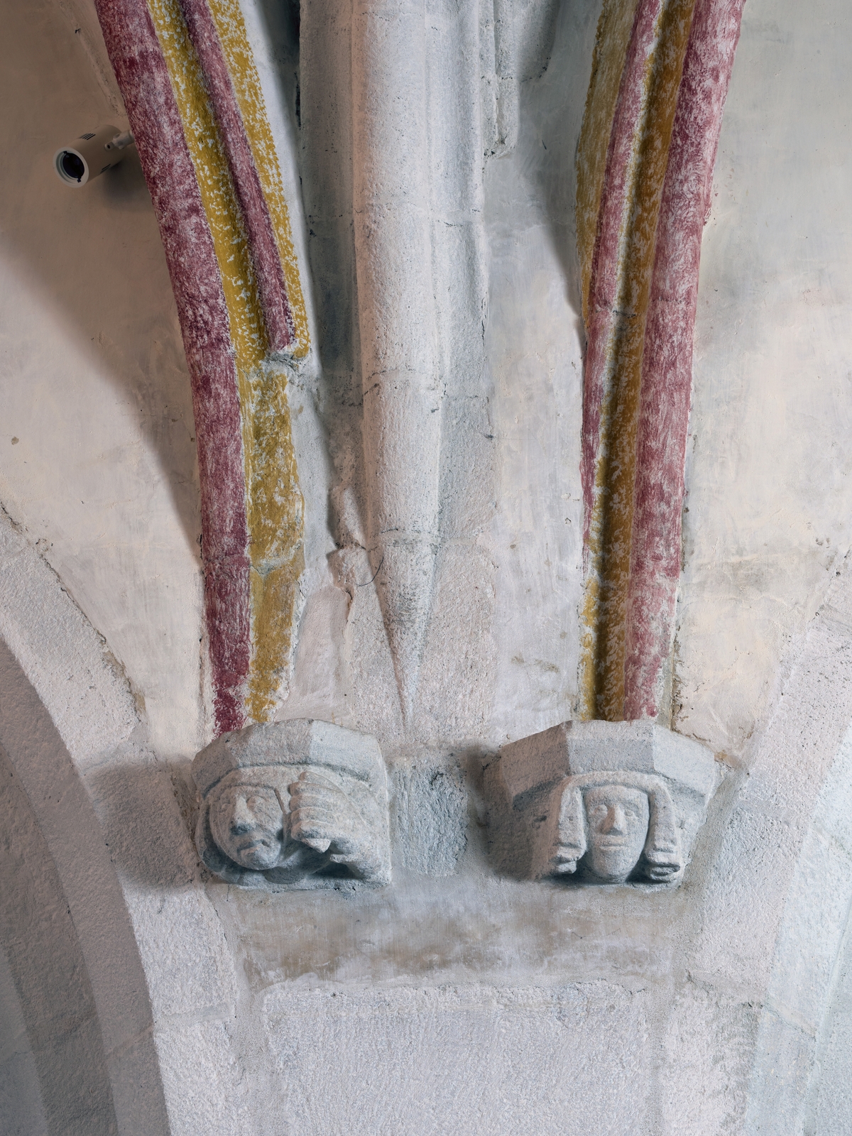 Collatéral nord. Retombée des voûtes. Détail de culots sculptés de tête humaineImmatriculation