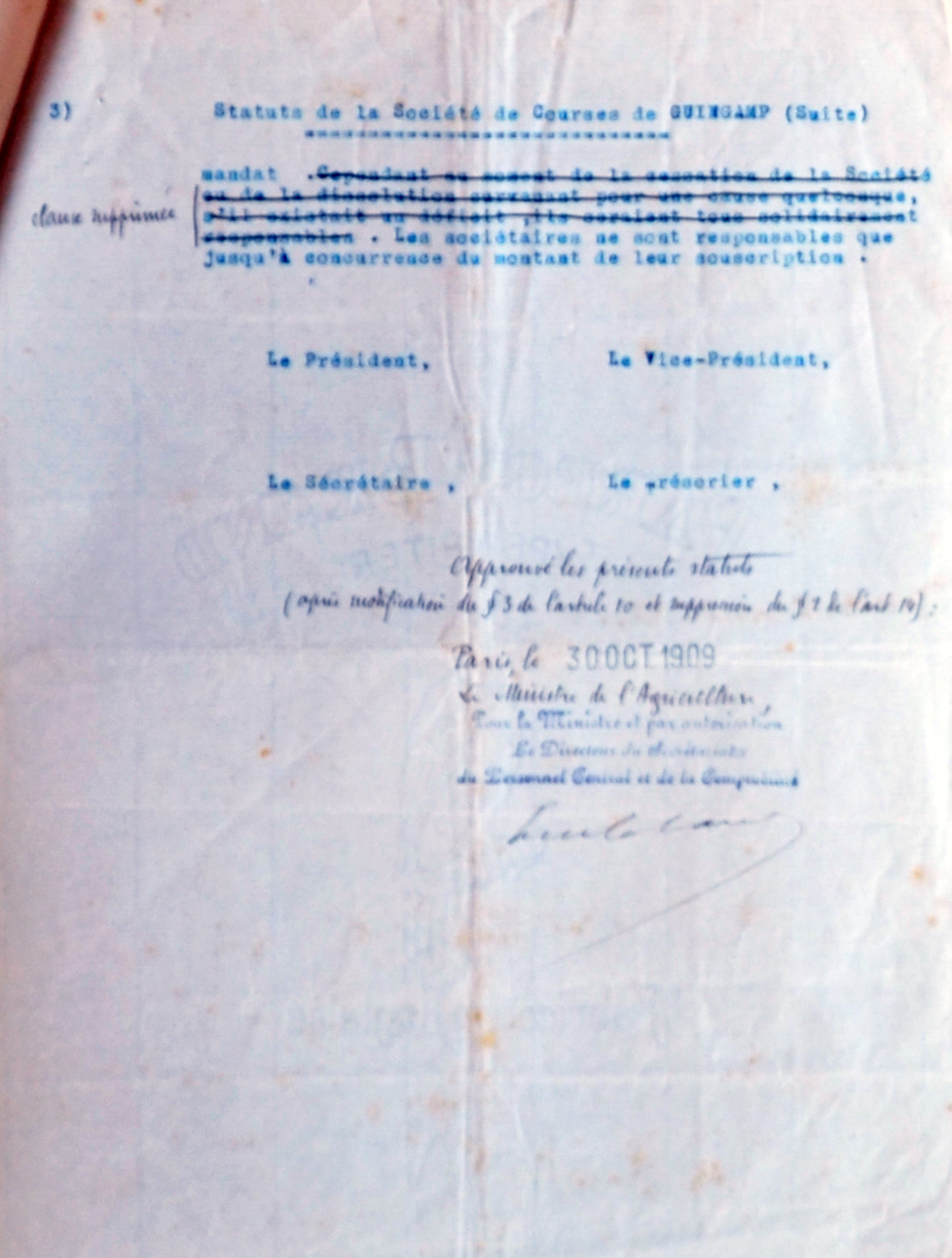 Société des courses de Guingamp, statuts de 1909, page 3Immatriculation