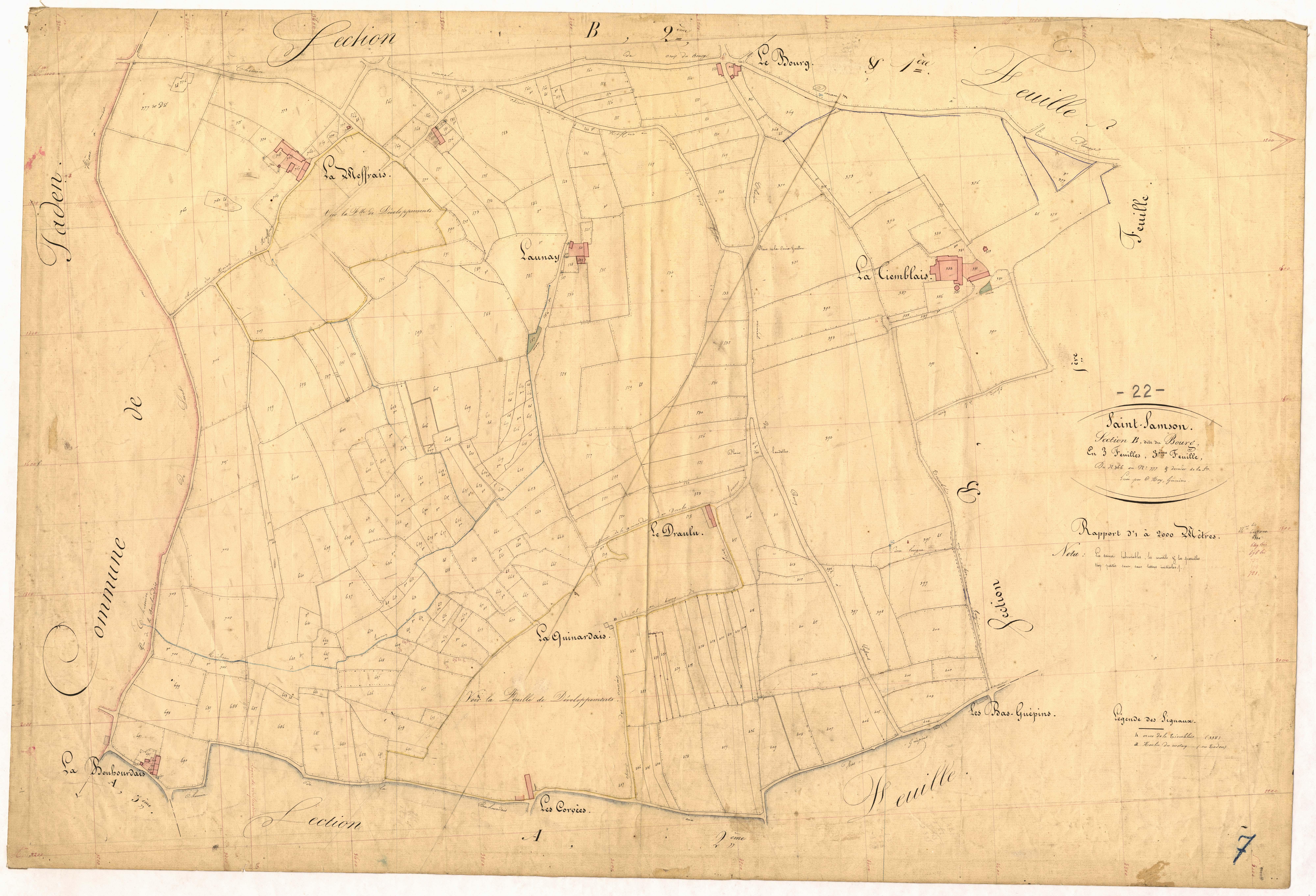 Cadastre ancien de Saint-Samson-sur-Rance, section B, 3e feuille, 1844.Immatriculation