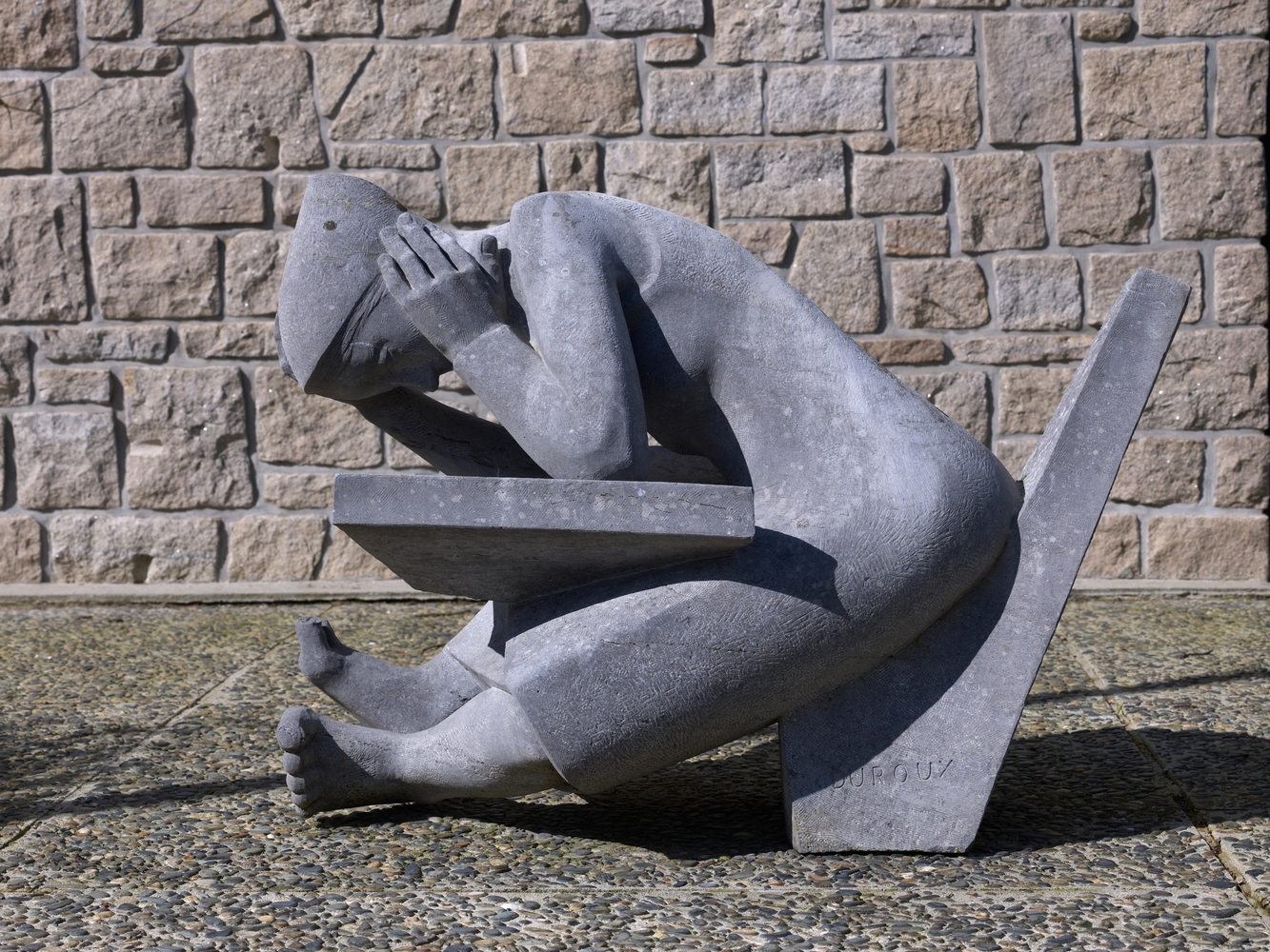 Sculpture de Jean-Pierre Duroux (1960), représentant une élève penchée sur un livre.Immatriculation