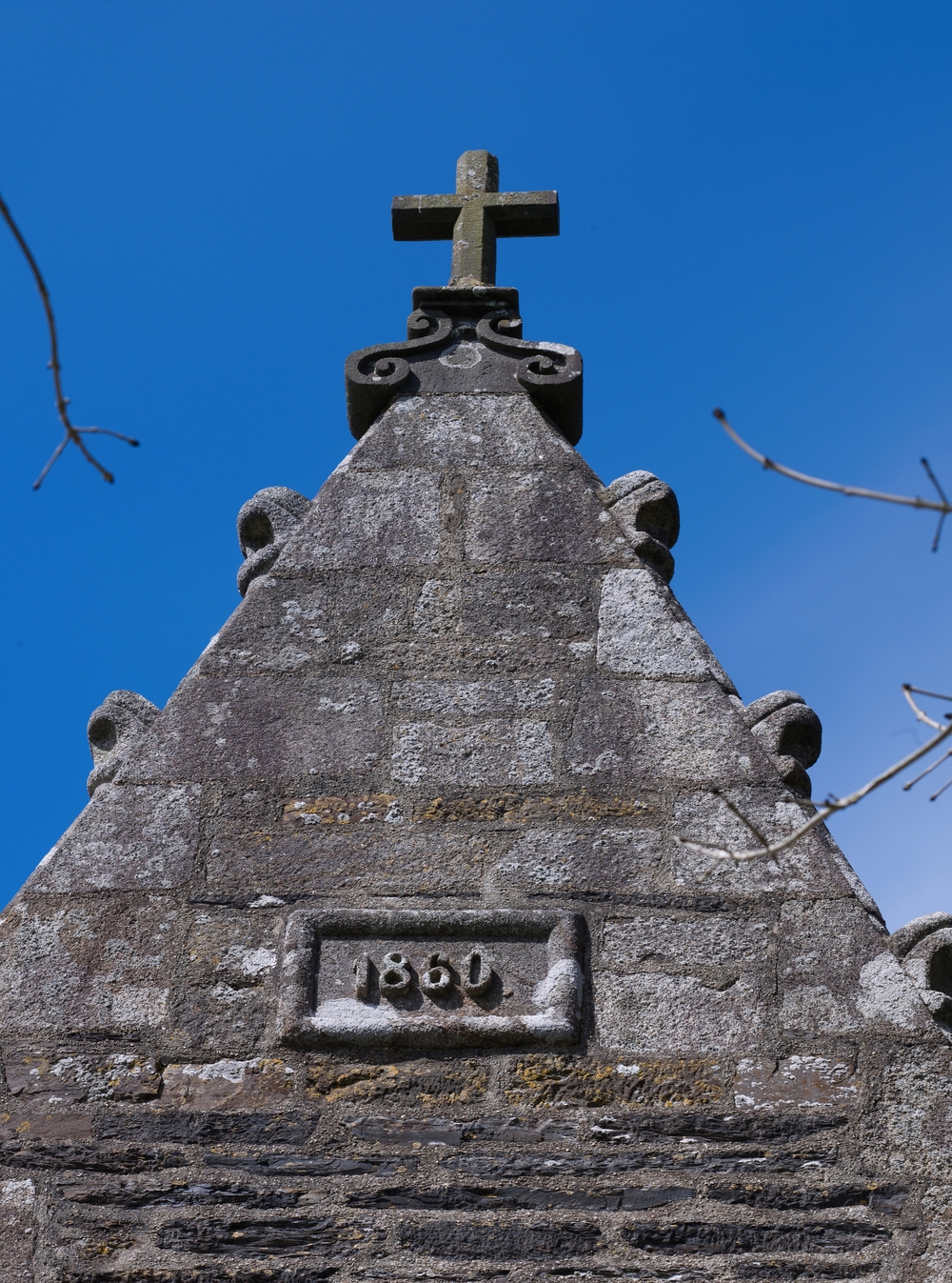 Détail fronton du porche sud, date portée 1860Immatriculation