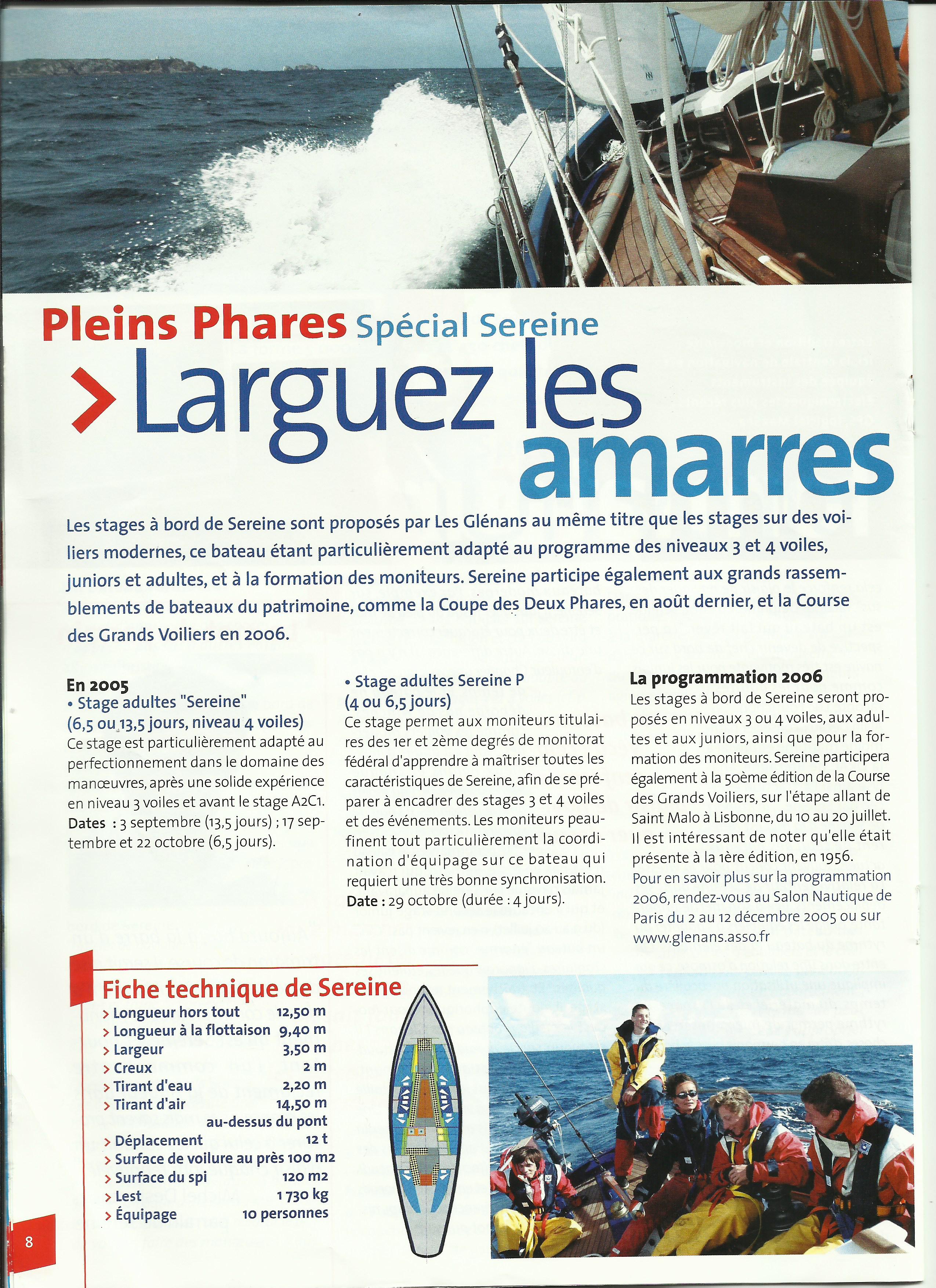 Stages sur Sereine -Courrier des Glénans N° 68 - 2005, p. 8Immatriculation