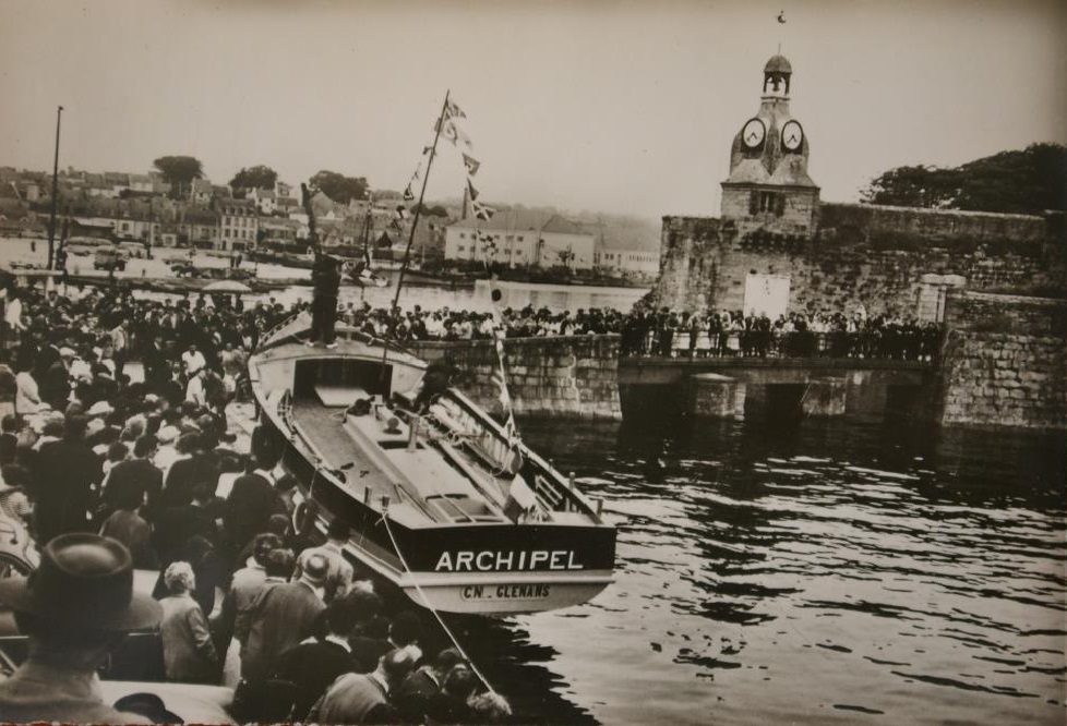 Lancement d'Archipel sur la cale devant la Ville Close, 1959, Studio Le Merdy, collection J.R. CannevetImmatriculation
