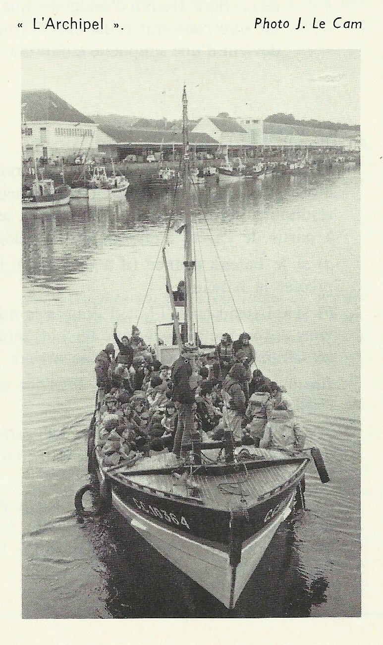 Photo Archipel, transport des stagiaires, port de Concarneau, par J. Le Cam, Glénans N° 88, 1977, p. 29Immatriculation