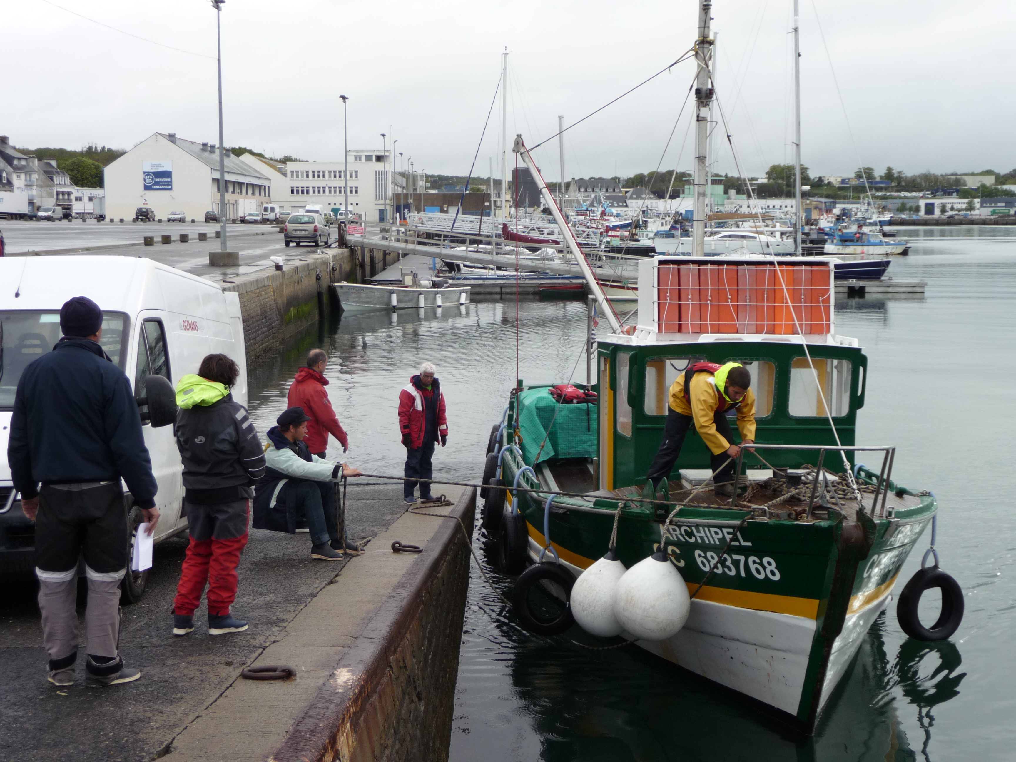 Manoeuvre à quai - amarrage de l'Archipel 2 -Concarneau -mai 2014Immatriculation