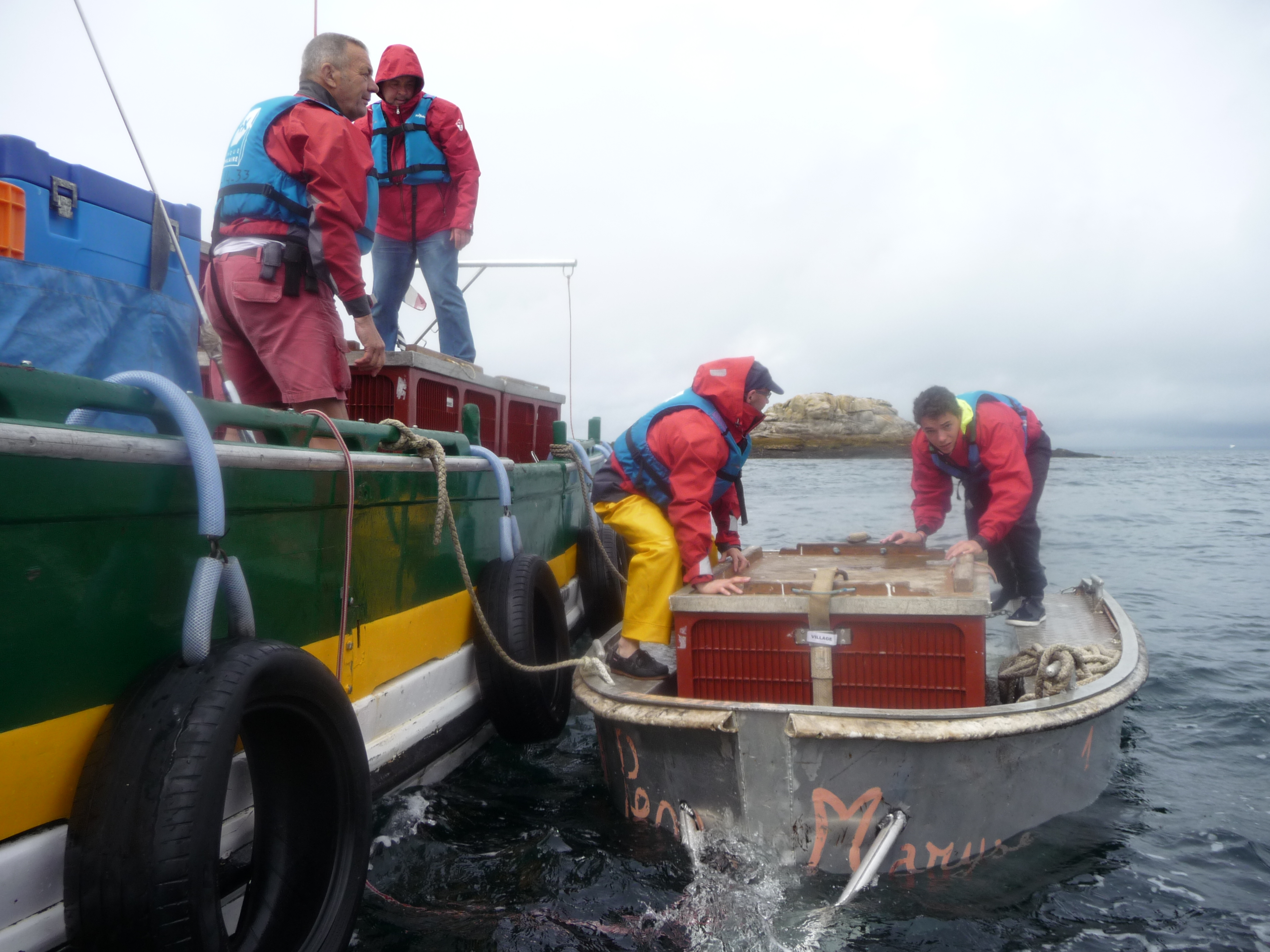 Cadillac à couple de l'Archipel -déchargement des caisses -vue avant - Penfret -mai 2014Immatriculation