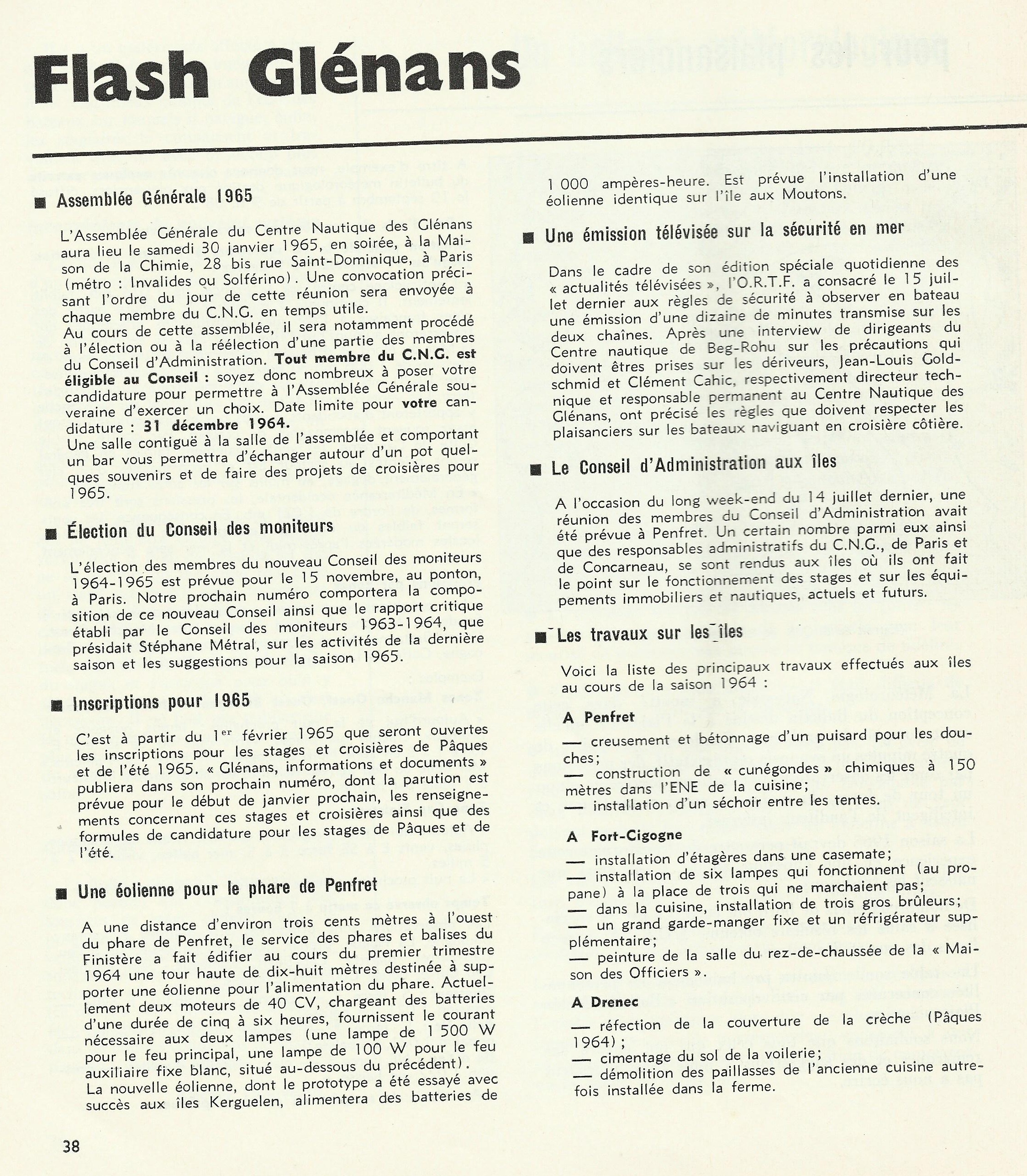 Travaux Cigogne - Glénans N° 40 - 1964- p. 38Immatriculation
