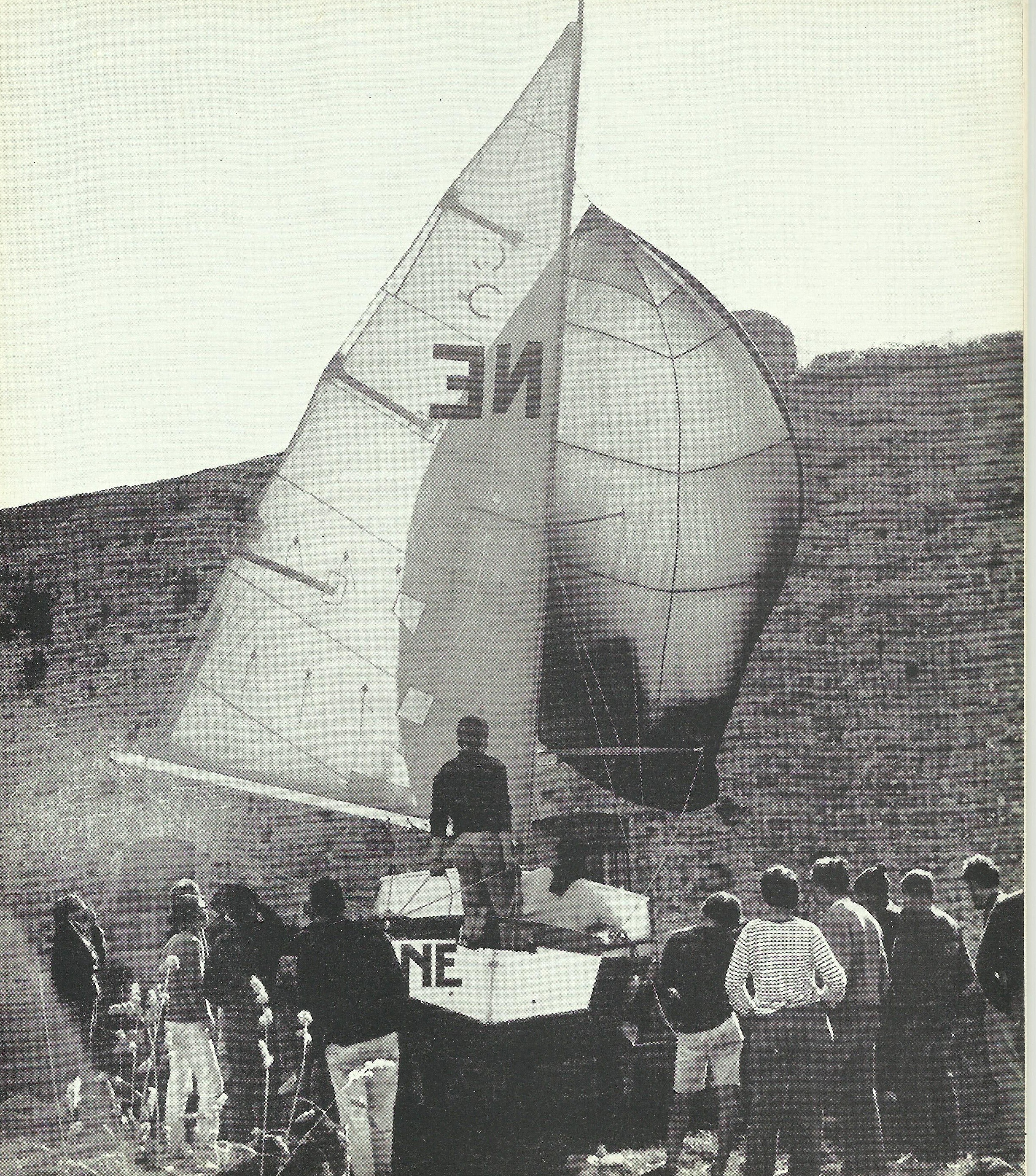 Cours de spi sur un Corsaire devant fort Cigogne, Glénans N° 56, 1968.Immatriculation