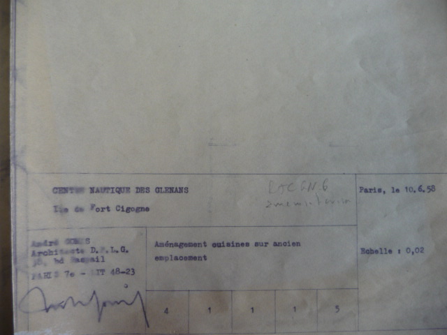 Cartouche plan André Gomis - Cuisine de Cigogne -10 juin 1958Immatriculation