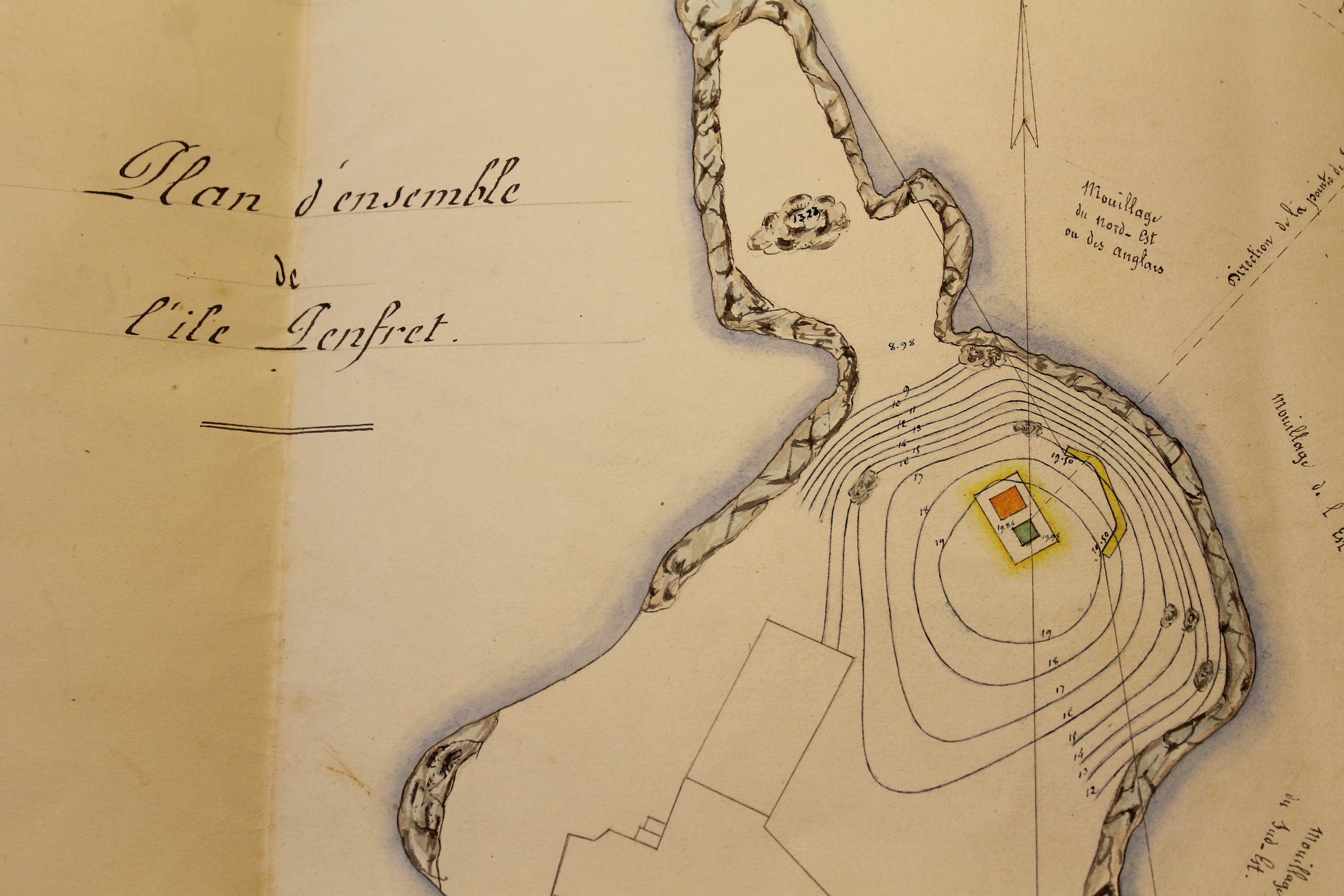 Construire à l'île Penfret une batterie pour 8 bouches à feu avec réduit, signé par le capitaine du génie en chef, Rousseau, le 30 décembre 1857Immatriculation