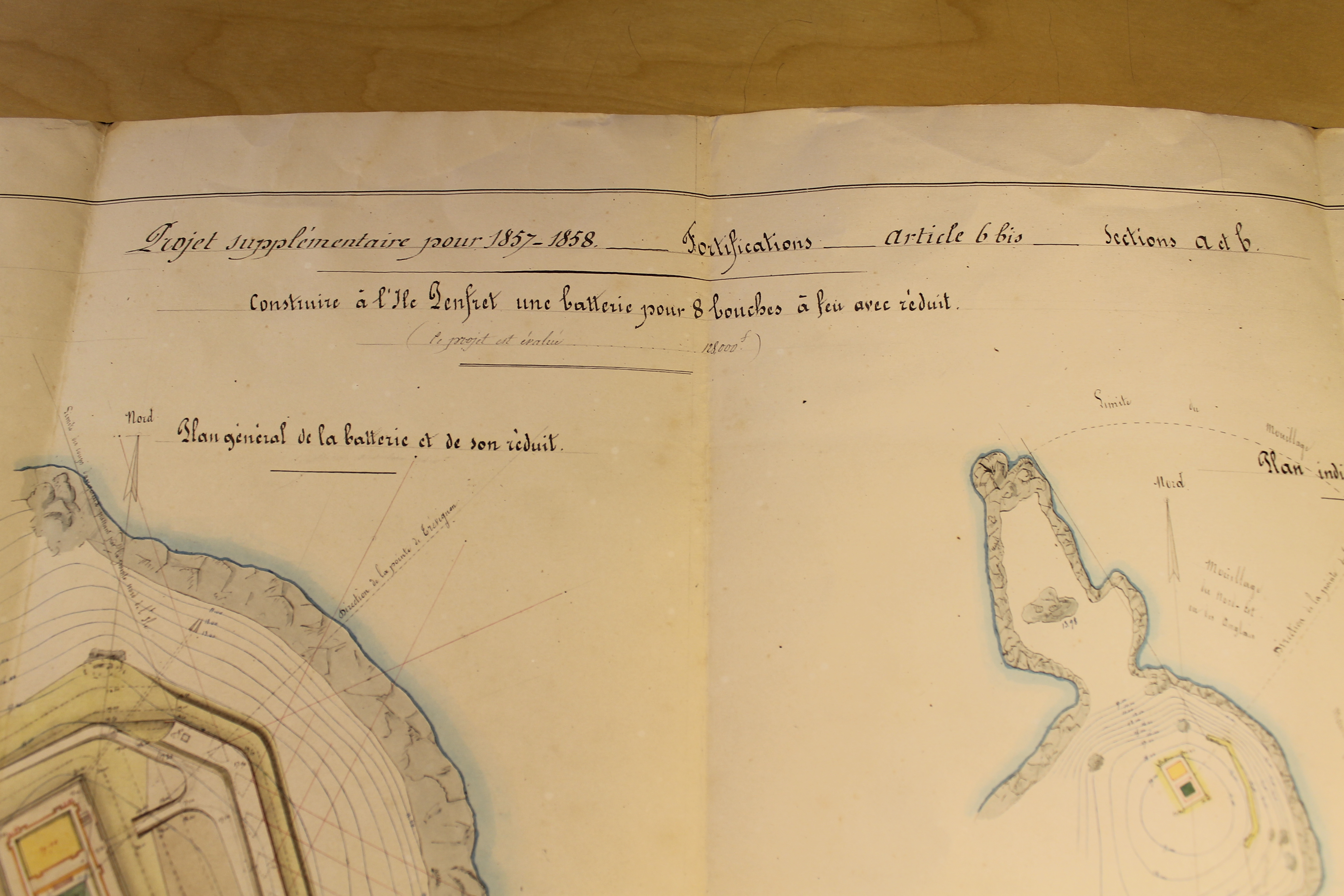 Construire à l'île Penfret une batterie pour 8 bouches à feu avec réduit, fait et dessiné par le capitaine du Génie en chef, Rousseau, à Concarneau, le 4 juin 1858Immatriculation