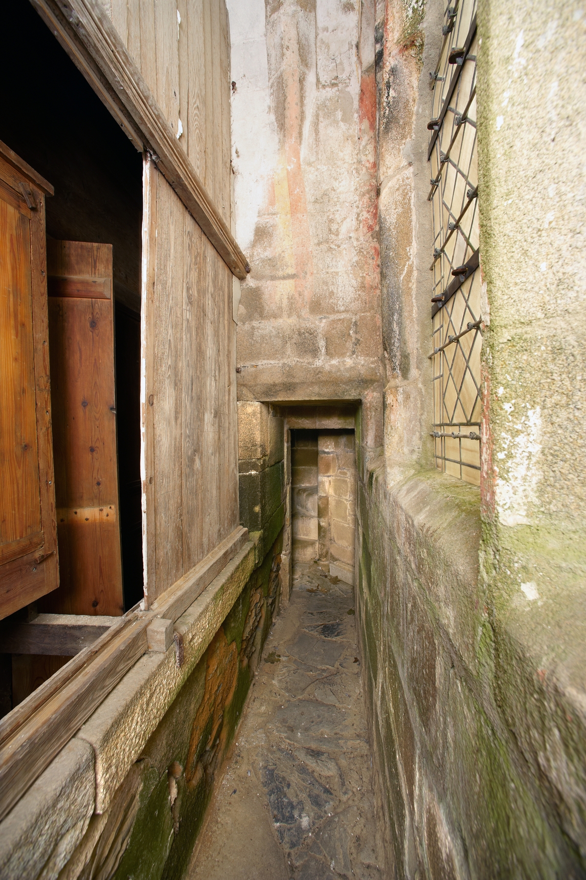 Revers de la façade ocidentale, vue en enfilade de la coursière.Immatriculation