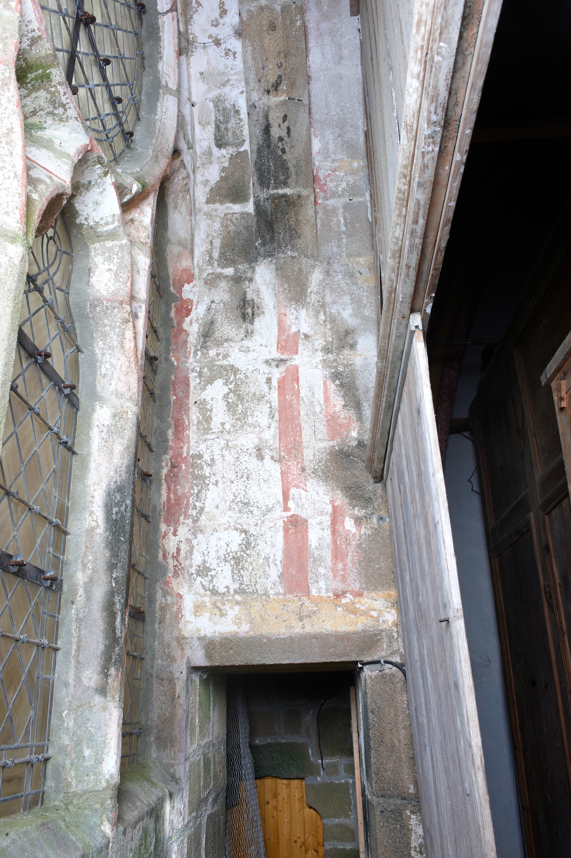 Revers façade occidentale, ébrasement, autres vestiges de décor peint.Immatriculation