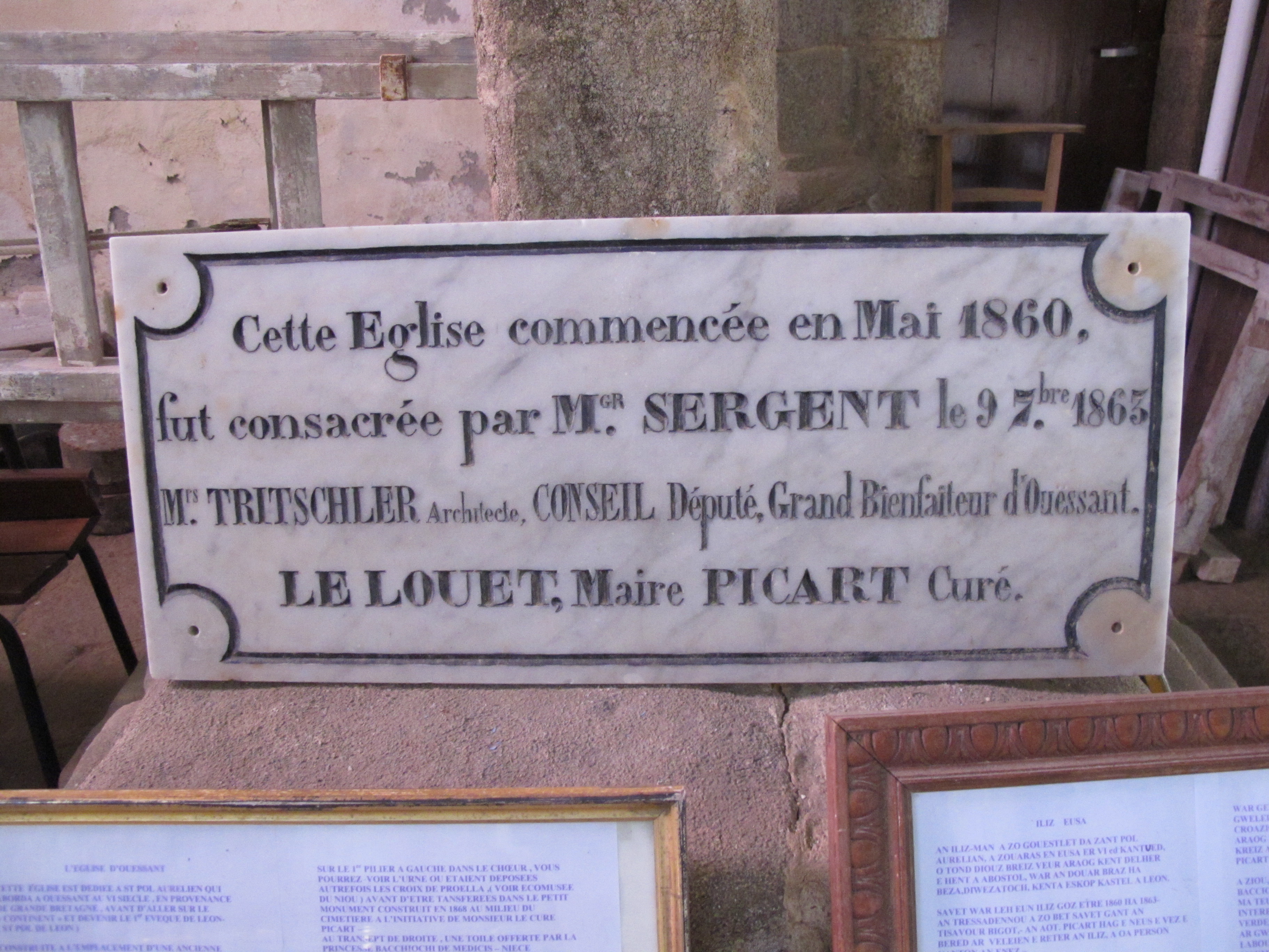 Plaque de fondation de l'église paroissiale de OuessantImmatriculation