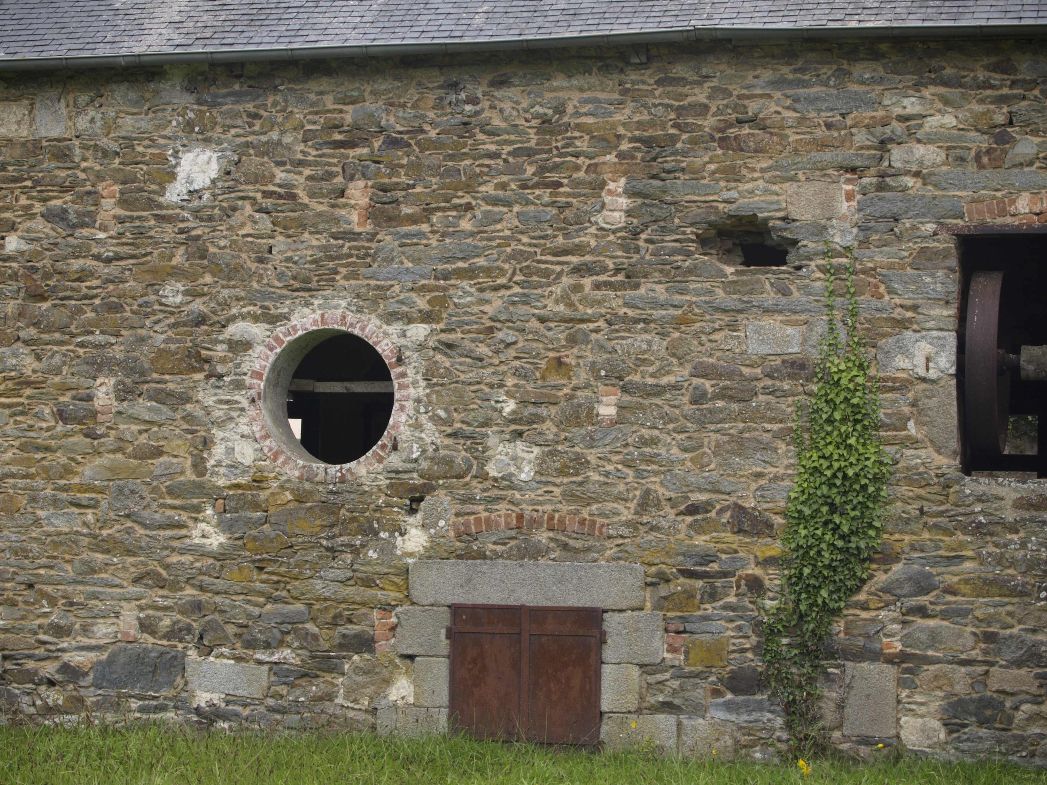 Ouverture vers la fosse à étoupe de la salle 3 (façade nord-ouest du bâtiment principal). Etat en 2015Immatriculation