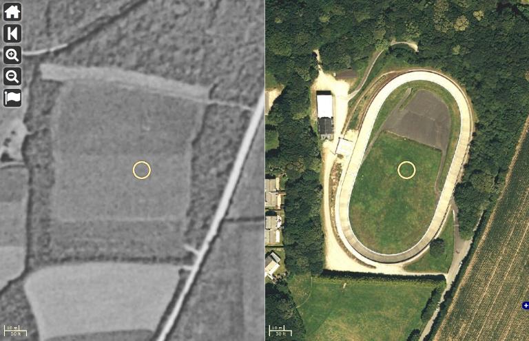 Vue aérienne comparée du site 1952 vs. 2012Immatriculation