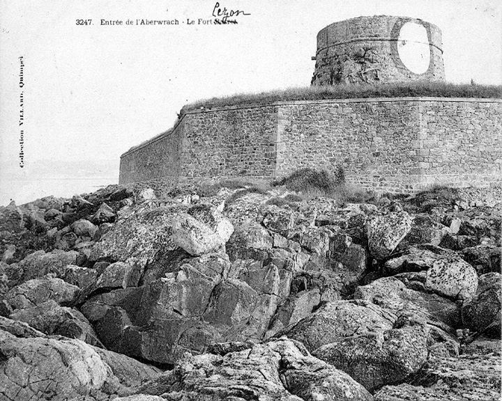 Landéda : fort Cézon, détail du fort et de la tour d'artillerie servant d'amer, ancienne carte postale, 1er quart du 20e siècle (source : site internet "Patrimoine des Abers")Immatriculation