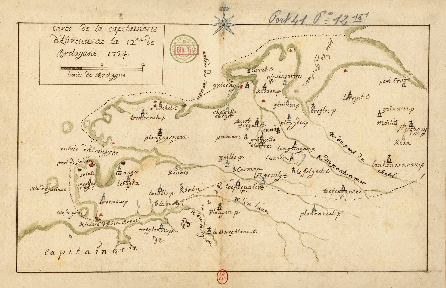 Carte de la capitainerie de l'Aber Wrac'h (12e capitainerie de Bretagne), 1734 (Gallica - Bibliothèque nationale de France)Immatriculation