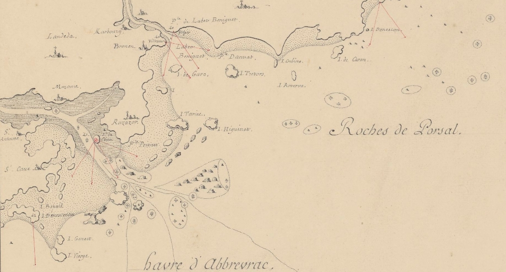 Carte marine de l'Aber Wrac'h avec la position des batteries de côte, 18e siècle (Gallica - Bibliothèque nationale de France)Immatriculation