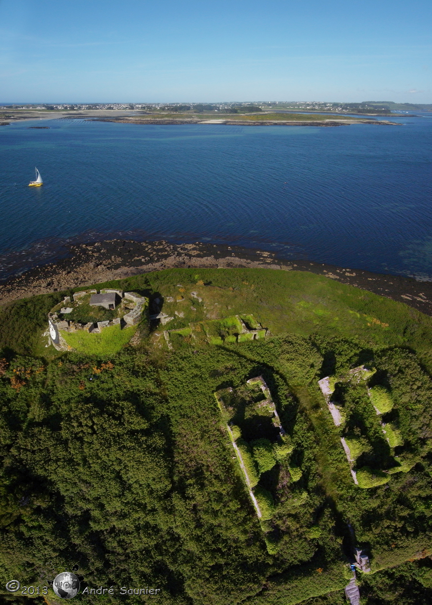Landéda : vue aérienne oblique de l'île Cézon et de son fort (photographie : André Saunier, 2013 / Kite Aerial Photography : photographie aérienne par cerf-volant)Immatriculation